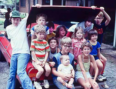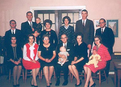 Back row: Nancy Clark, Allan, Mary Alice, and Joel Heard, Bob Hearn, Tim Heard, Florence and Aubrey Hearn, Suzie Lusk, Brian Dillalrd, Fred Lusk, Lerma and Charles Hearn (6 children, 13 grandchildren. Fourteenth grandchild, Katie Beth, not born yet)