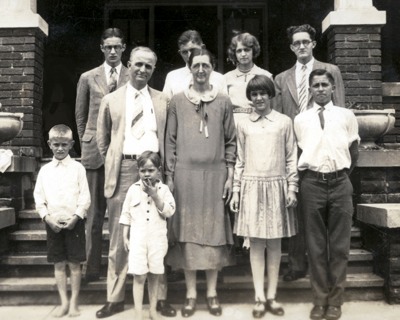 The C. L. Hearn family in 1928: Joe Ed, Kermit, Papa (Charles Lycurgus Hearn), Jack, Fred, Mama (Della Jane), Mildred, mary Nell, Aubrey and Glenn Hearn (Albertville)