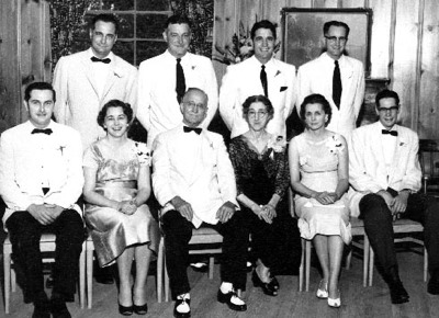 Charles L. (Papa) Hearn family on their Golden Wedding anniversary. From left: (seated) Joe Ed Hearn, Mary Nell Beasley, Papa and Mama Hearn, Mildred Walker, Jack Hearn, (standing) Kermit, Fred, Glenn, and Aubrey Hearn (May 1956)