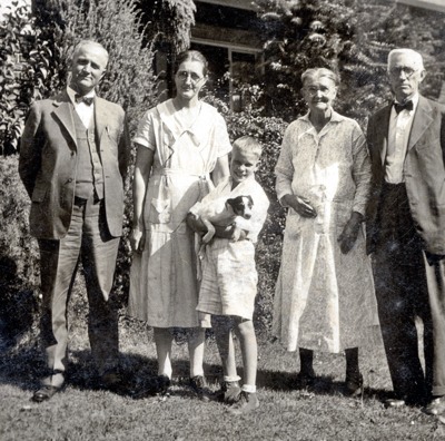 Ike Hubbard with his grown children in 1936, just after Sarah (Bean) Hubbard's death) L-R: Beulah Estelle (Hubbard) Campbell, Asa George Hubbard, Thomas Coleman Hubbare, Isaac Edward Hubbard, Della (Hubbard) Hearn, and Myrtle Louceil (Hubbard) Thompson