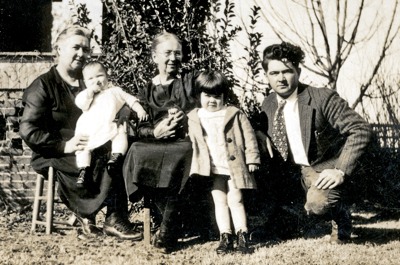 Thomas G. Conner Jr. with his mother Lena (Allen) Conner and her mother Florence Rebecca (Archer) Allen. The two children are probably Thomas' daughters, Lena (baby) and Catherine.