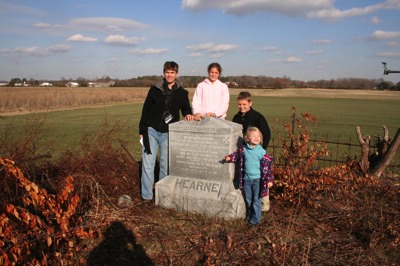 Grave marker for Immigrant William Hearne, with descendants Chris & Annika Hearn (2005)