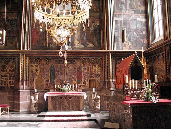 Tomb of Saint Wenceslas (of Christmas carol fame) in the St. Vitus Cathedral.