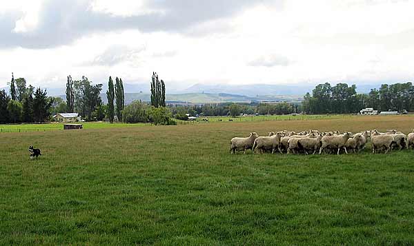 Dog herding sheep at Fontmell Farm