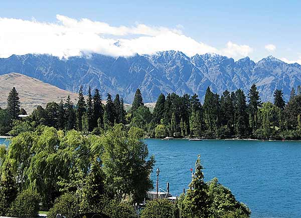 Lake Wakatipu and The Remarkables mountains (the mountains were shown in Lord of the Rings movies)