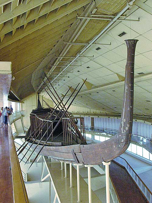 The Solar Boat, which was found dissasembled in a pit next to the Great Pyramid.