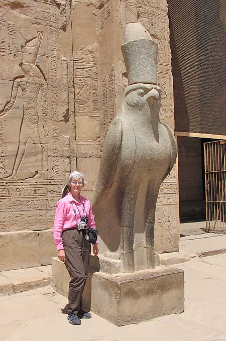 Statue of Horus, the falcon god, in the courtyard of Horus Temple.