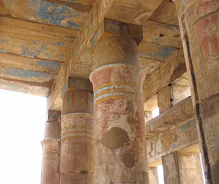 Portions of Karnak Temple columns showing the original painted colors.