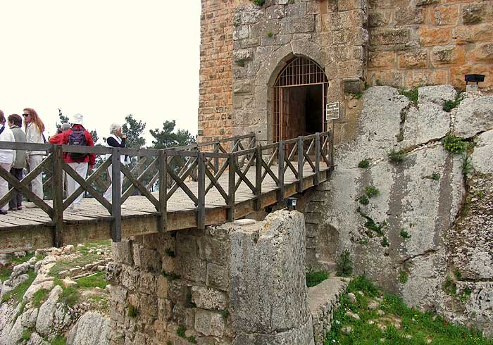The entrance to 12th-century Ajlun Castle showing the (dry) moat circling the castle.