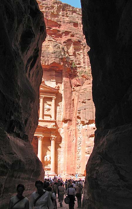 First view of Petra at the end of the Siq.