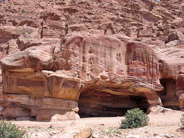 Shows the variety of colors in the rock throughout Petra.