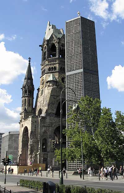 Kaiser Wilhelm church (damaged in WWII and left in damaged state as a memorial).