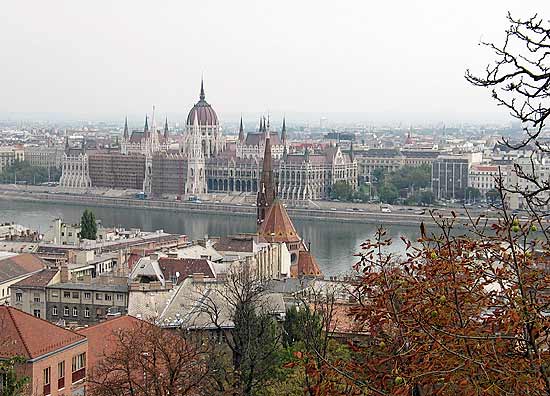 View of Danube River and Parliament building from Fisherman's Bastion.