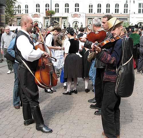 Musicians at the festival, preparing for a parade.