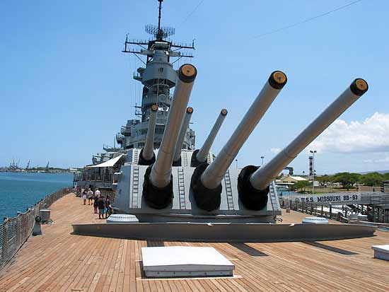 Battleship U.S.S. Missouri, now docked at Pearl Harbor.