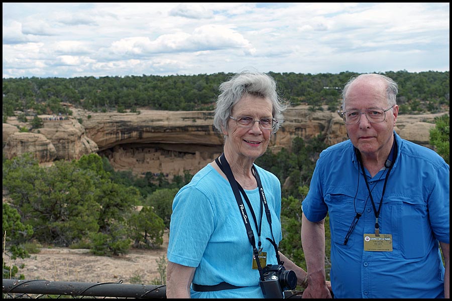 Lerma and Charles in Mesa Verde National Park, "Cliff Palace" dwellings in background.