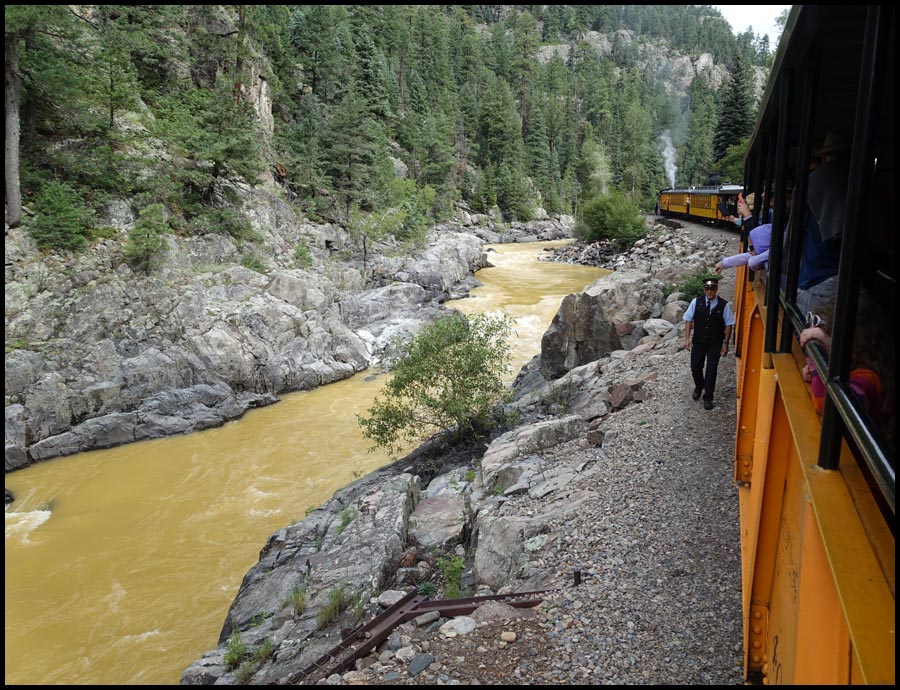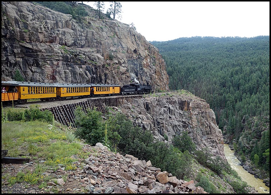 Coal-fired narrow-gauge train for 45-mile ride from Durango to Silverton, Colorado.