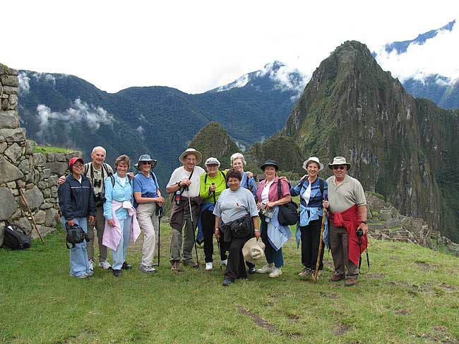 Some of our tour group near the Machu Picchu Guard House (Trip leader Lucrecia in front)