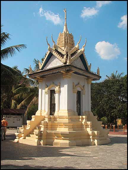 Killing Fields memorial containing bones of victims of Khmer Rouge atrocities.