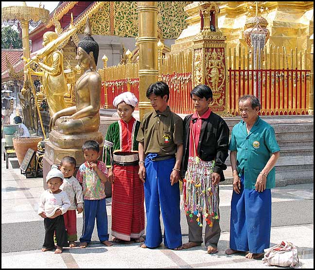 A hill tribe family having their picture taken at the Doi Suthep Temple.